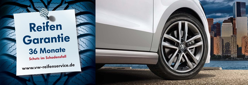 Volkswagen Reifengarantie mit 36 Monaten günstiger Ersatz im Schadensfall.